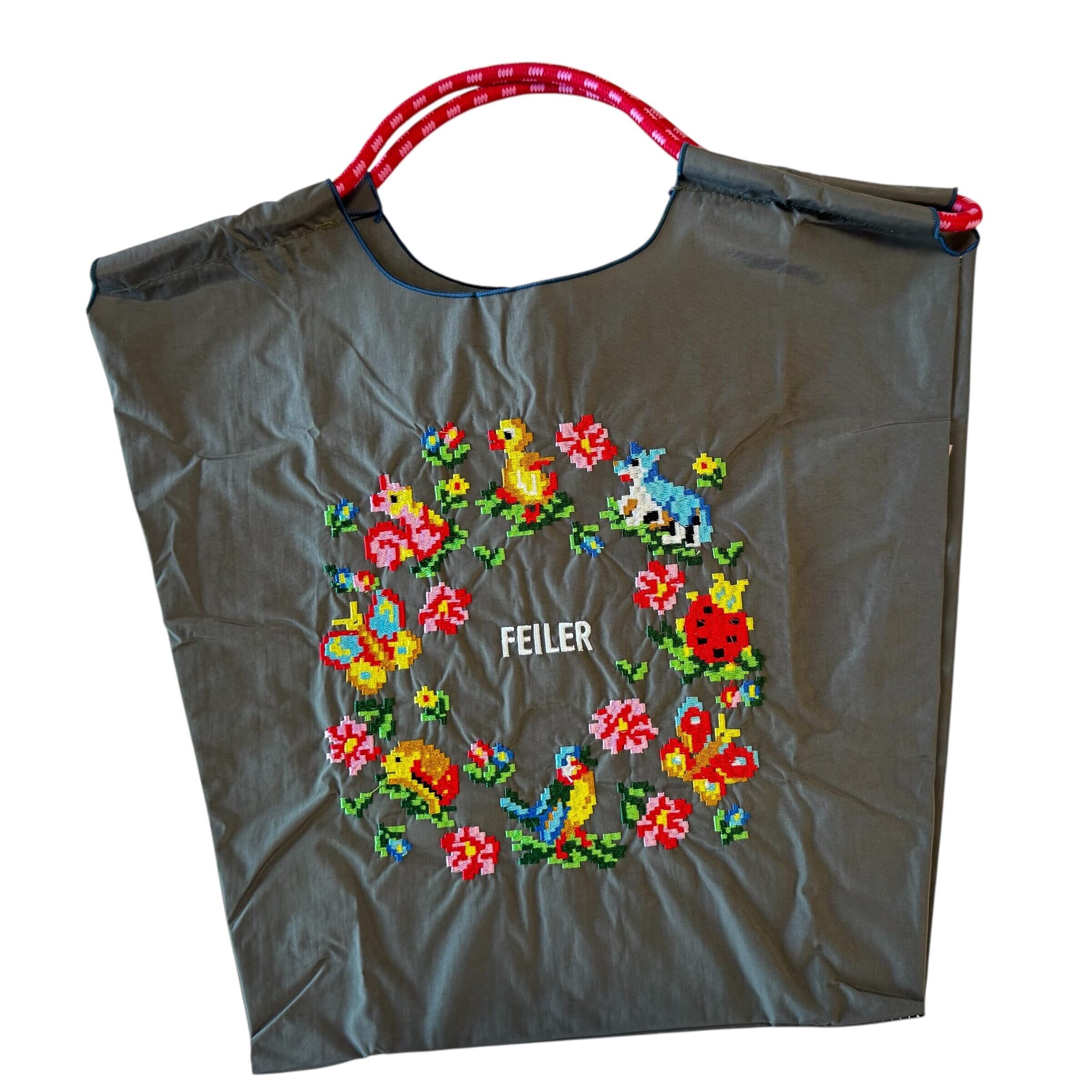 小さなアニマルズの刺しゅうがとても楽しそうな…おしゃれかわいいナイロンバッグです。